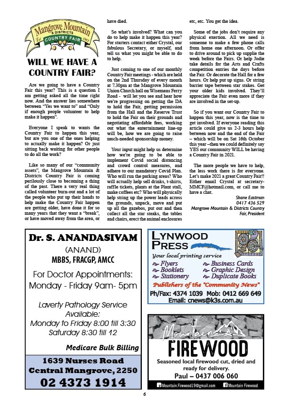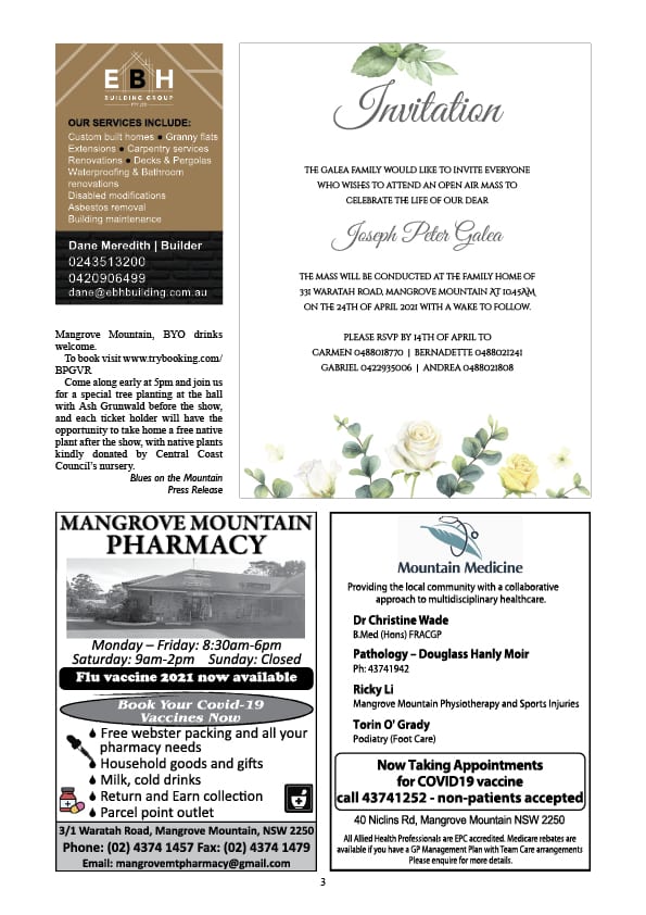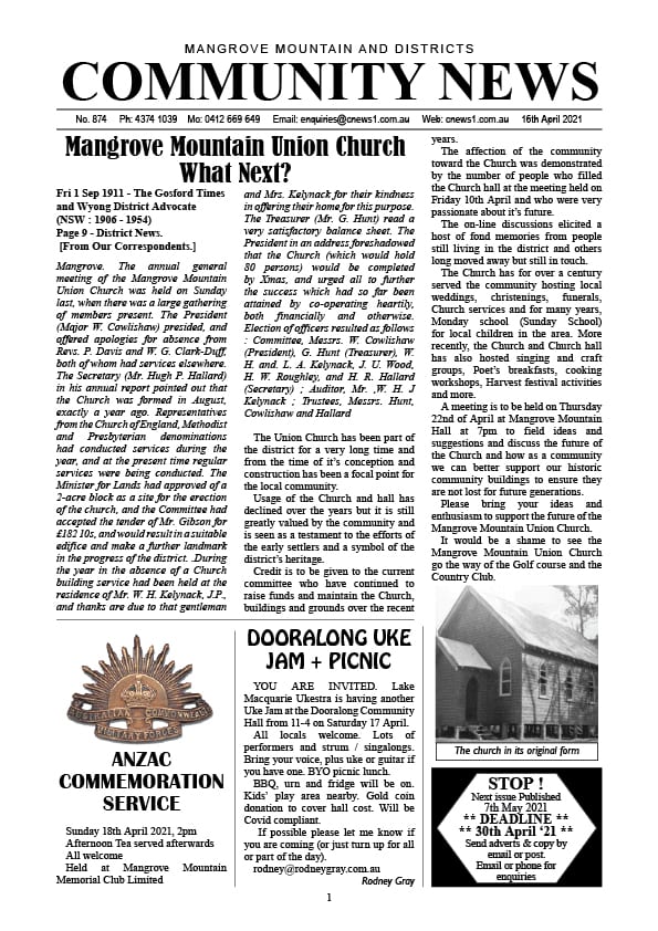 Mangrove Mountain & Districts Community News – Issue 874