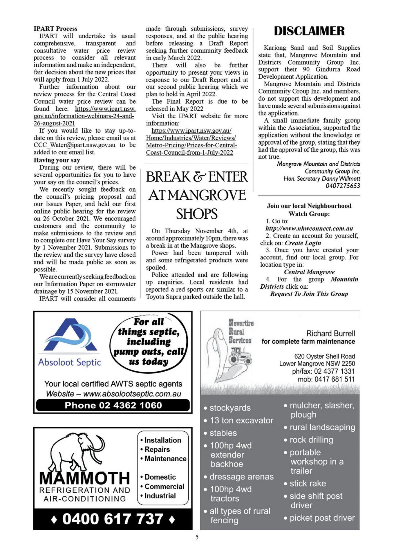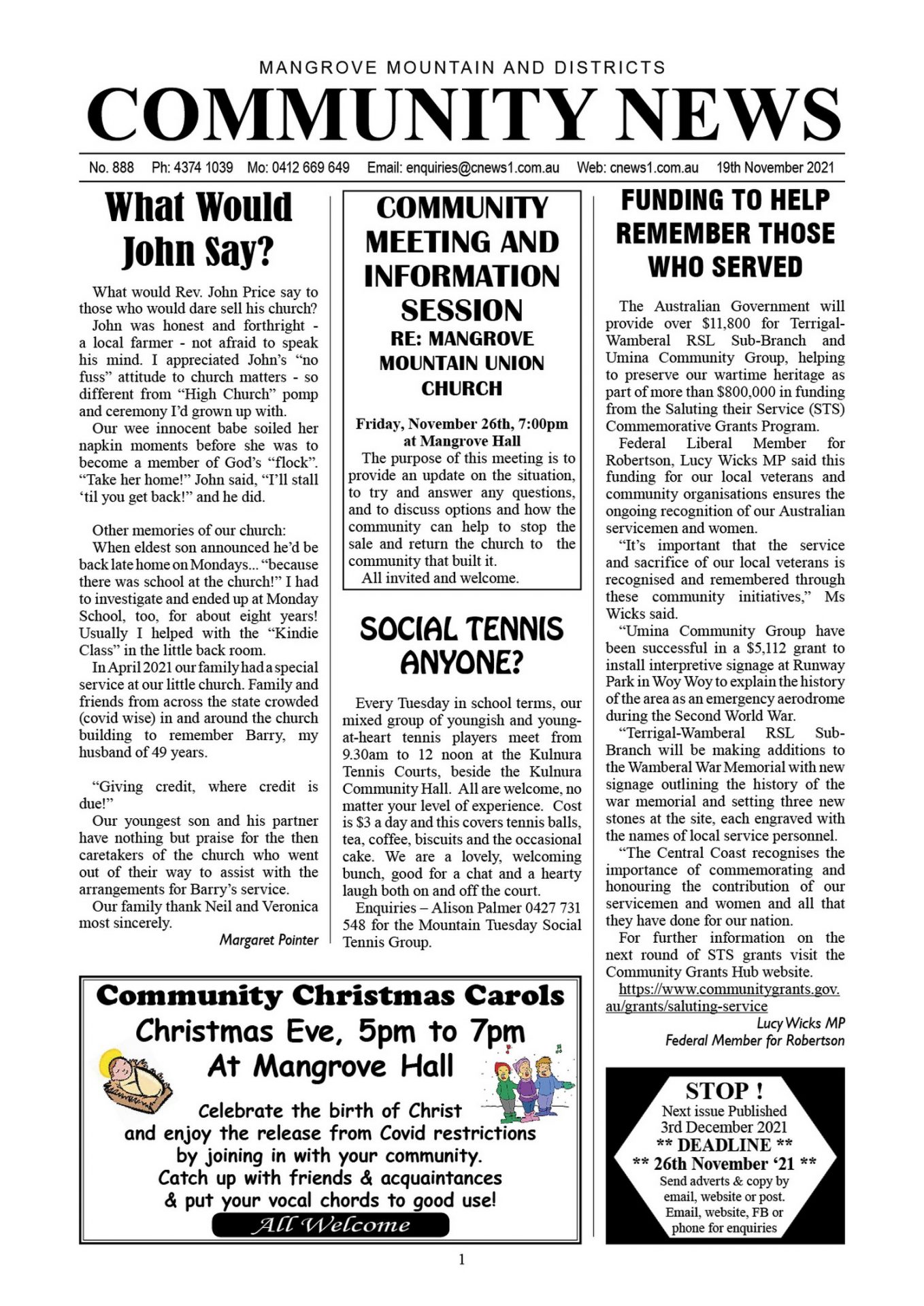 Mangrove Mountain & Districts Community News – Issue 888