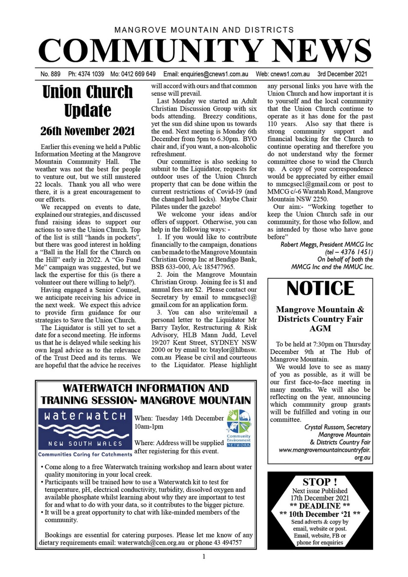 Mangrove Mountain & Districts Community News – Issue 889