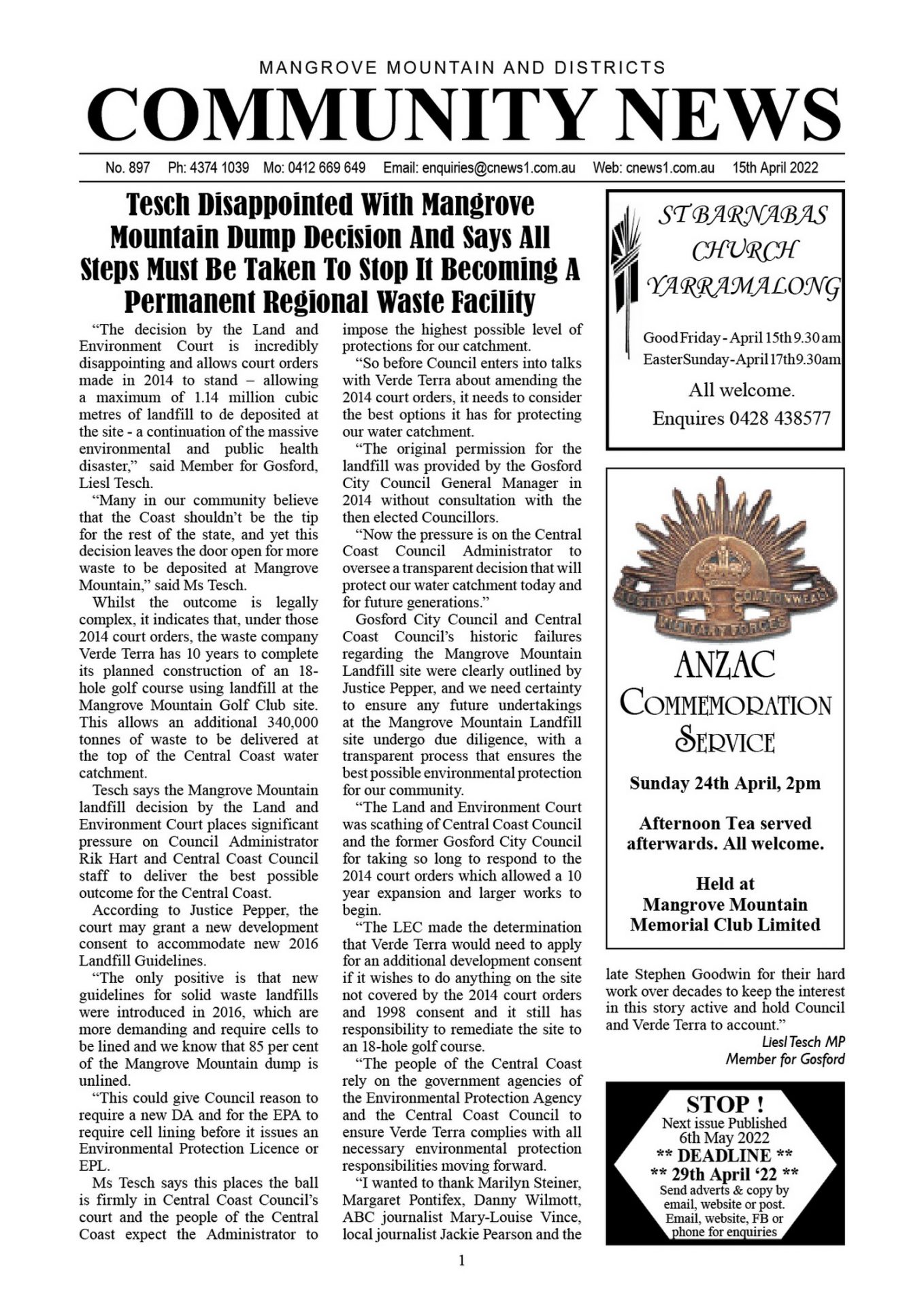 CN897 April 15, 2022 CN897 pdf download CN897 flipbook view Mangrove Mountain & Districts Community News – Issue 897 Posted in Past Issues, Past publications