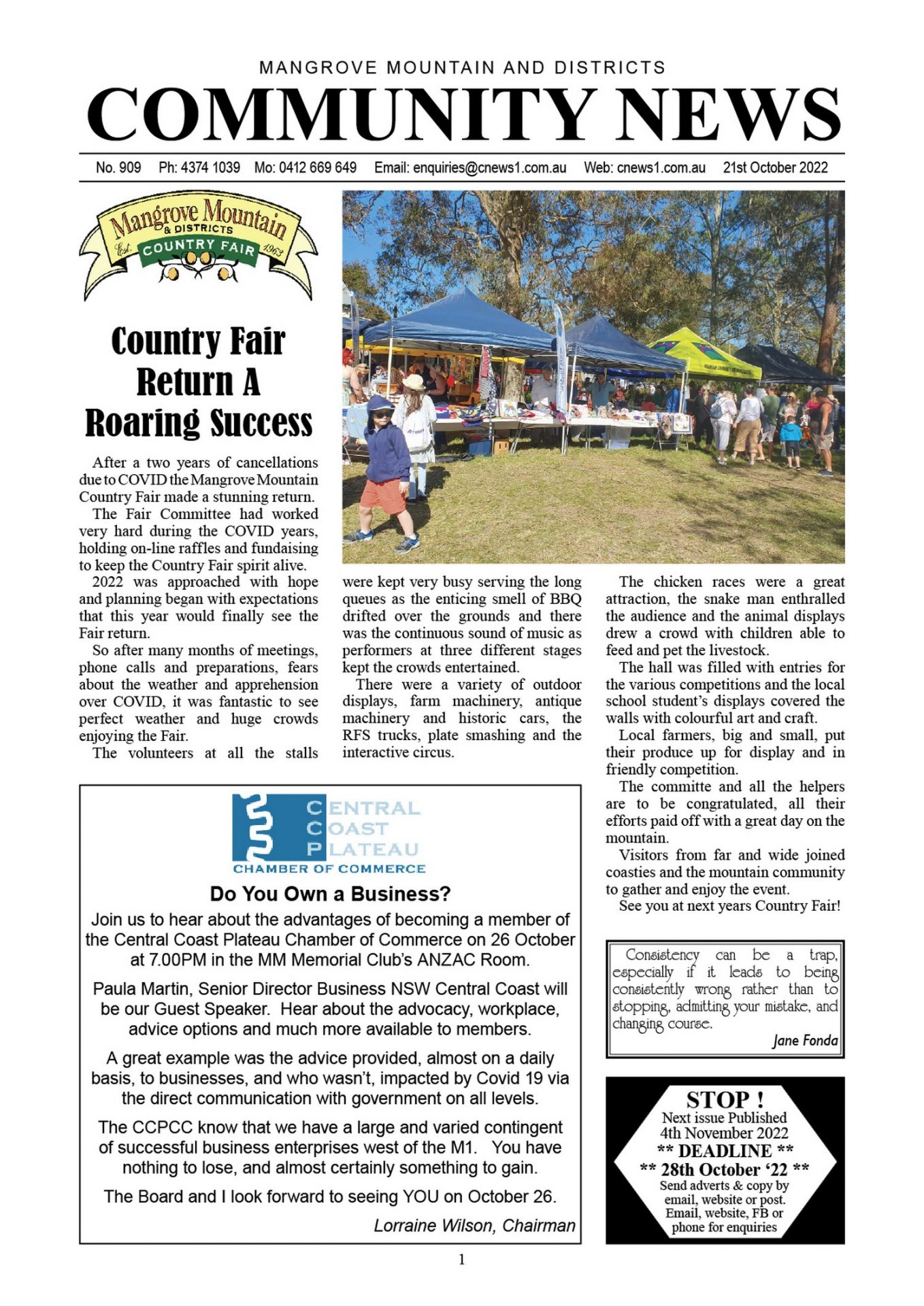 CN909 October 21, 2022 CN909 pdf download CN909 flipbook view Mangrove Mountain & Districts Community News – Issue 909 Posted in Past Issues, Past publications