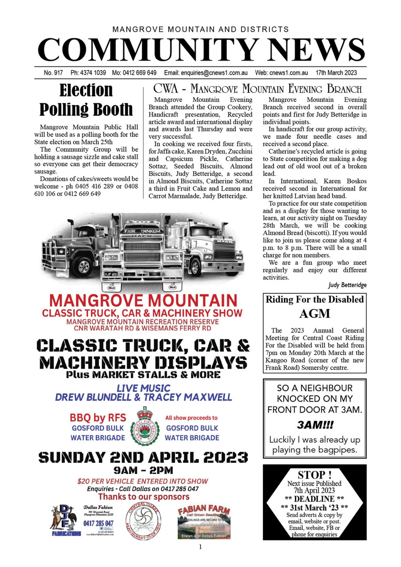 CN917 March 17, 2023 CN917 pdf download CN917 flipbook view Mangrove Mountain & Districts Community News – Issue 917 Posted in Past Issues, Past publications