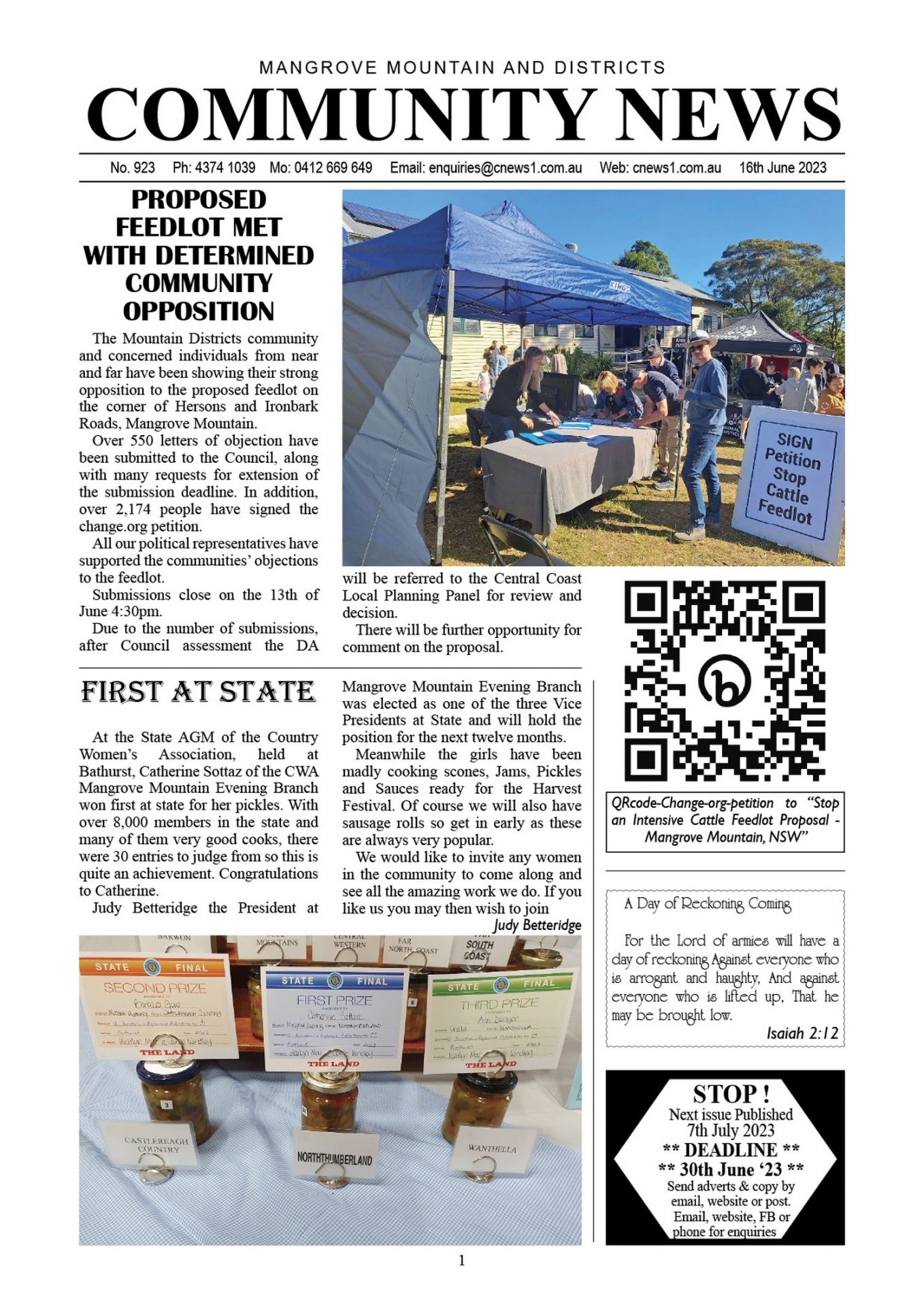 CN923 June 16, 2023 CN923 pdf download CN923 flipbook view Mangrove Mountain & Districts Community News – Issue 923 Posted in Past Issues, Past publications