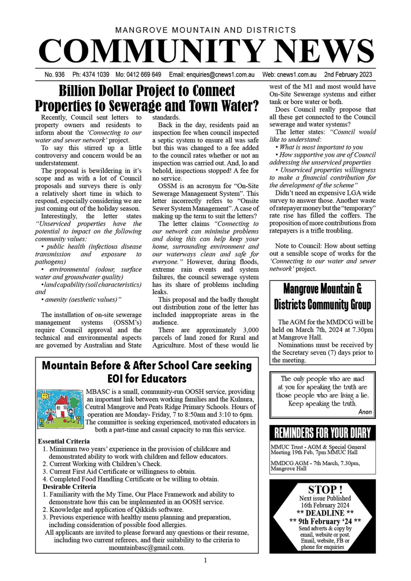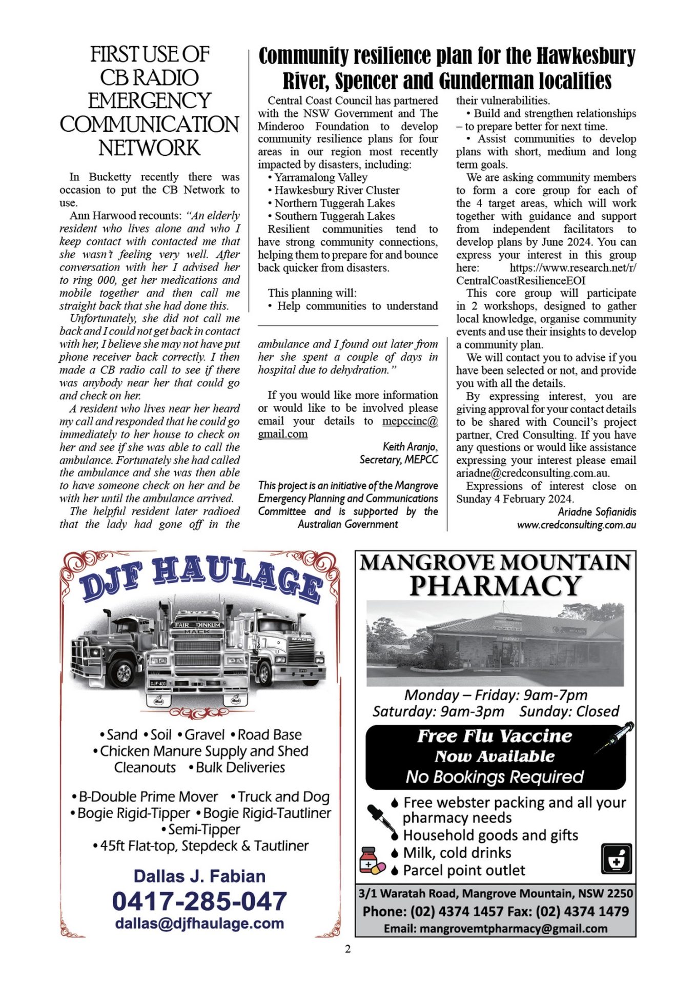 CN936 February 2, 2024 CN936 pdf download CN936 flipbook view Mangrove Mountain & Districts Community News – Issue 936 Posted in Past Issues, Past publications