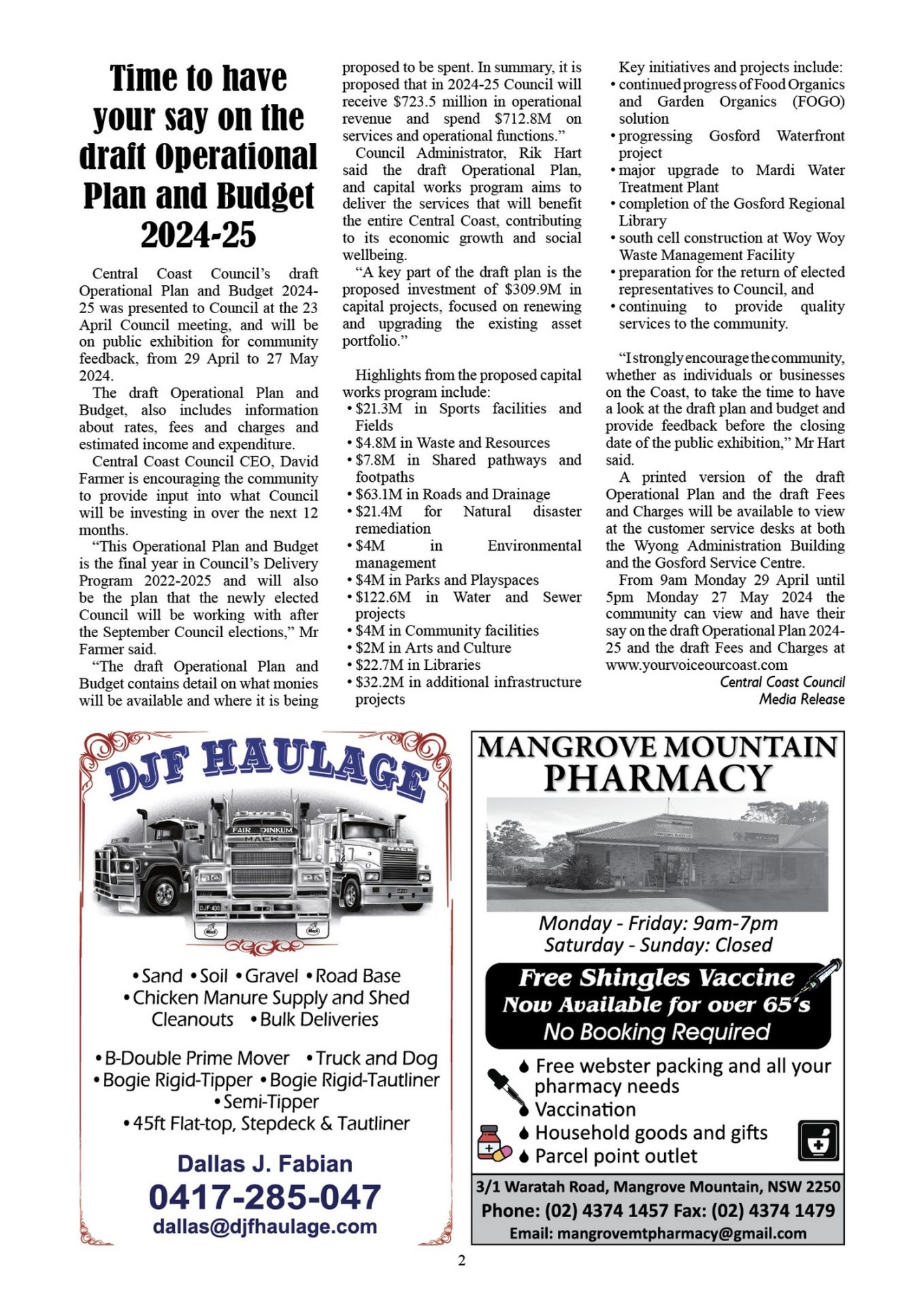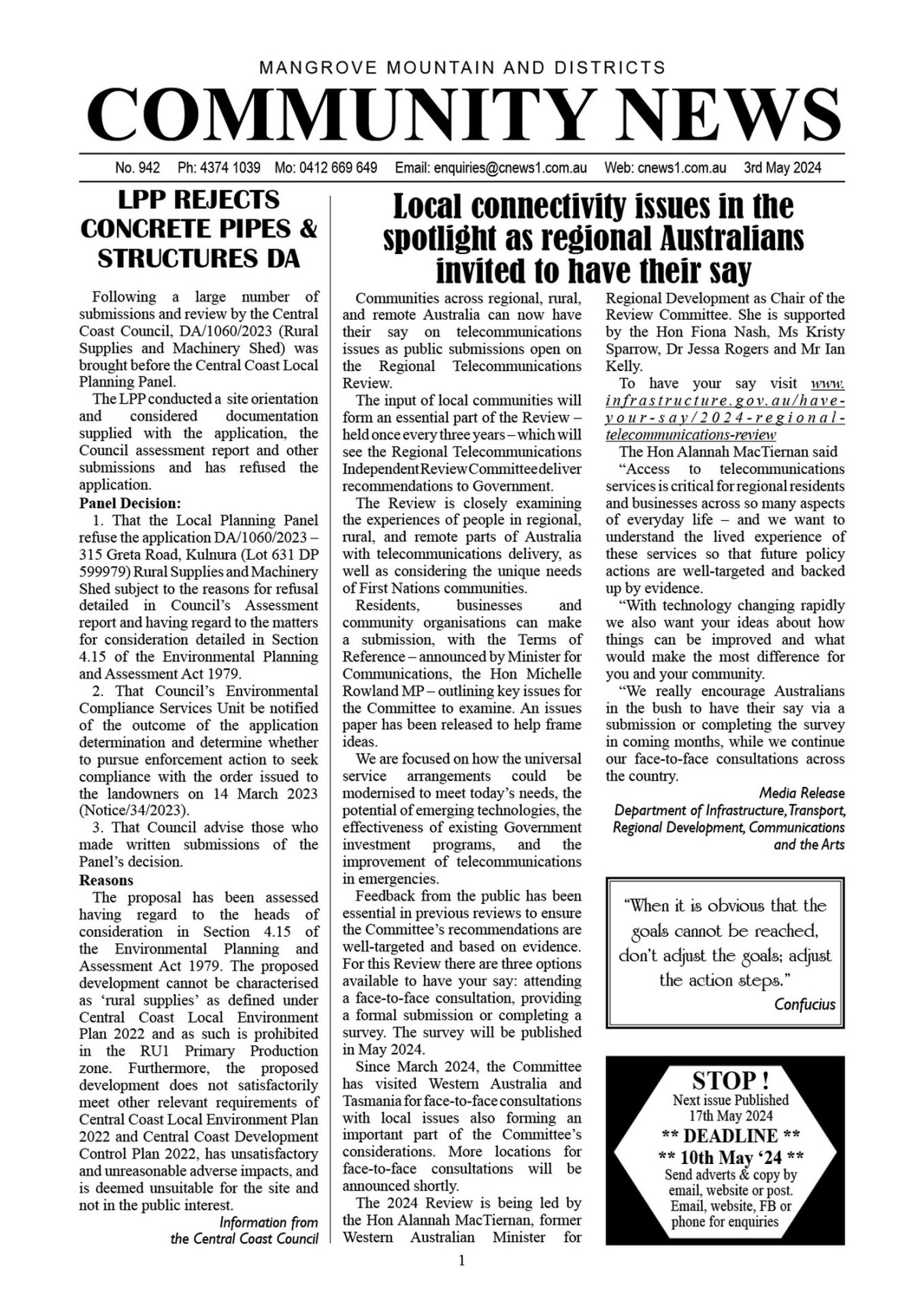 CN942 May 3, 2024 CN942 pdf download CN942 flipbook view Mangrove Mountain & Districts Community News – Issue 942 Posted in Past Issues, Past publications
