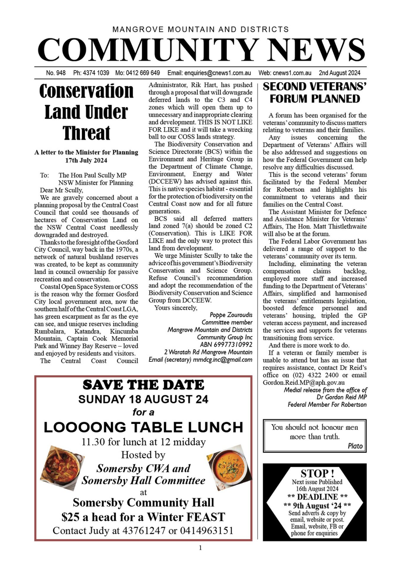 CN948 August 2, 2024 CN948 pdf download CN948 flipbook view Mangrove Mountain & Districts Community News – Issue 948 Posted in Past Issues, Past publications