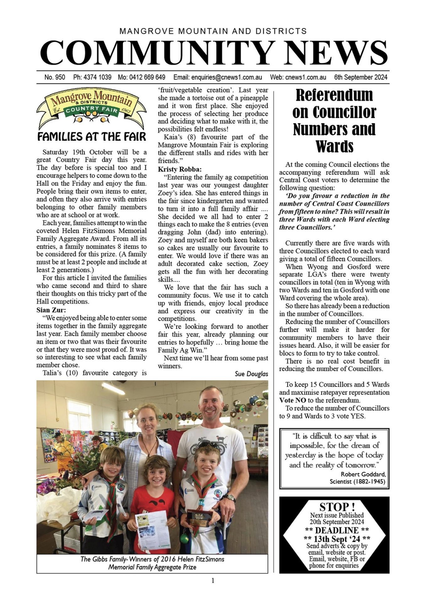 CN950 September 6, 2024 CN950 pdf download CN950 flipbook view Mangrove Mountain & Districts Community News – Issue 950 Posted in Past Issues, Past publications