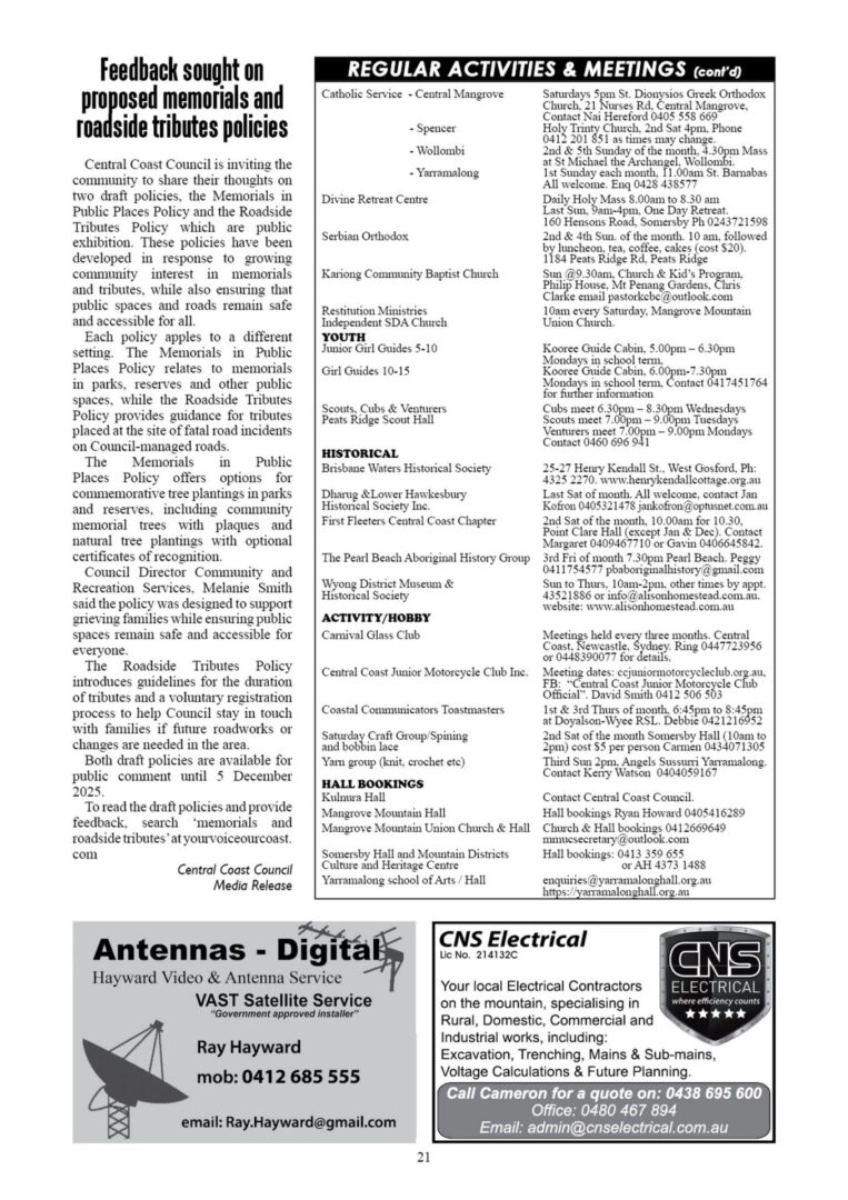 CN976 November 7, 2025 | 0 CN976 pdf download CN976 flipbook view Mangrove Mountain & Districts Community News – Issue 976 Posted in Past Issues, Past publications