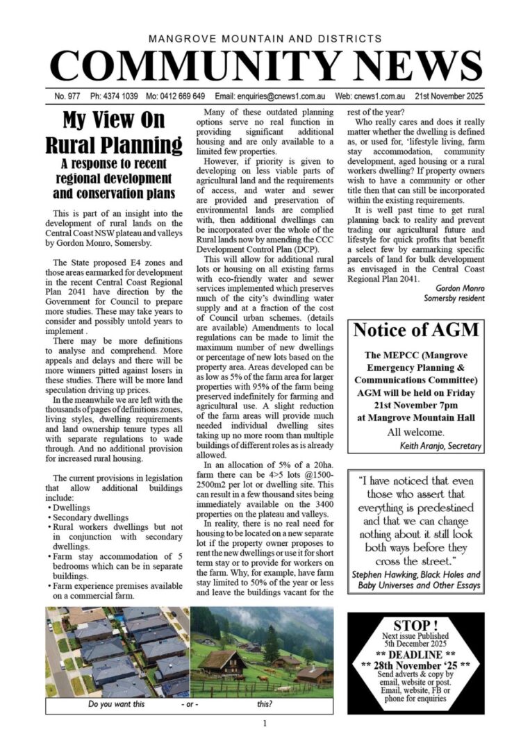 Mangrove Mountain & Districts Community News – Issue 977
